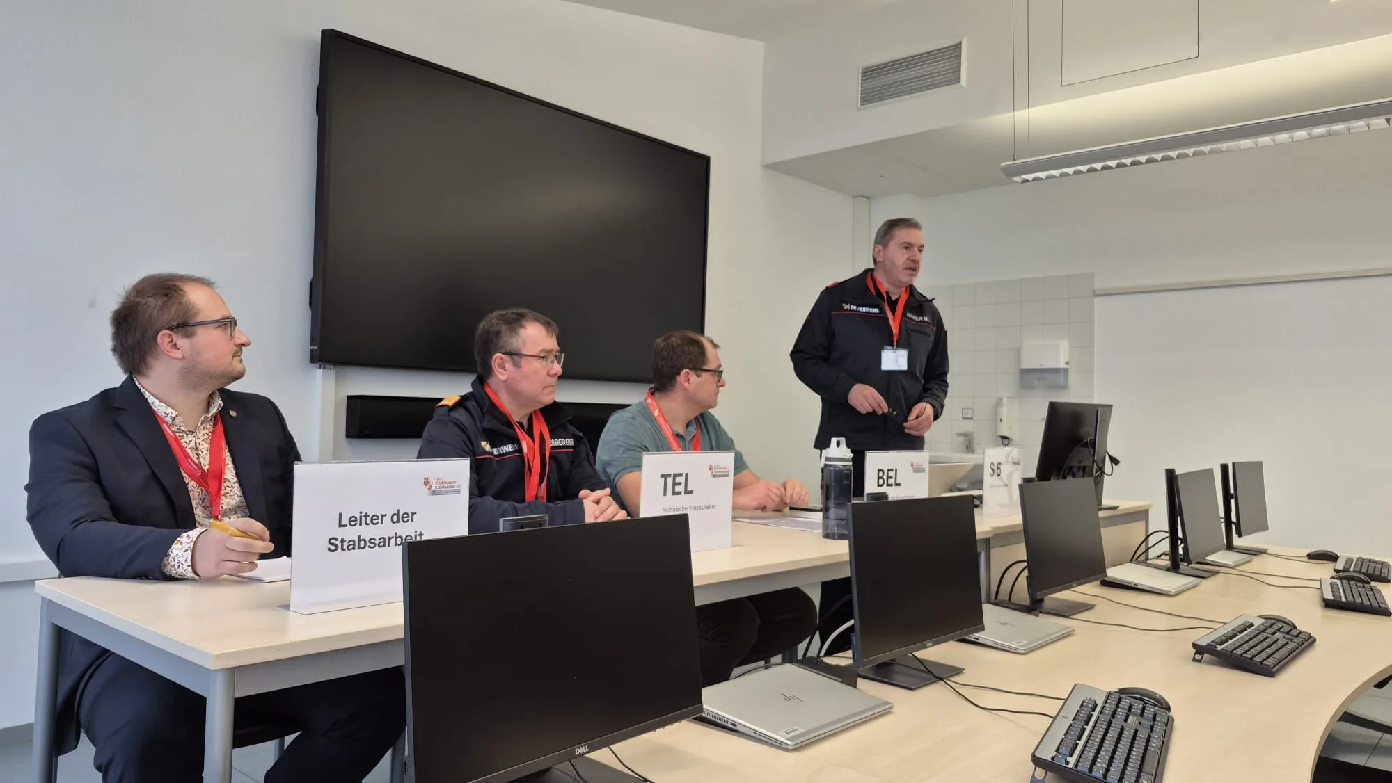 • Ein mehrstündiges Planspiel im integrierten Führungsstab