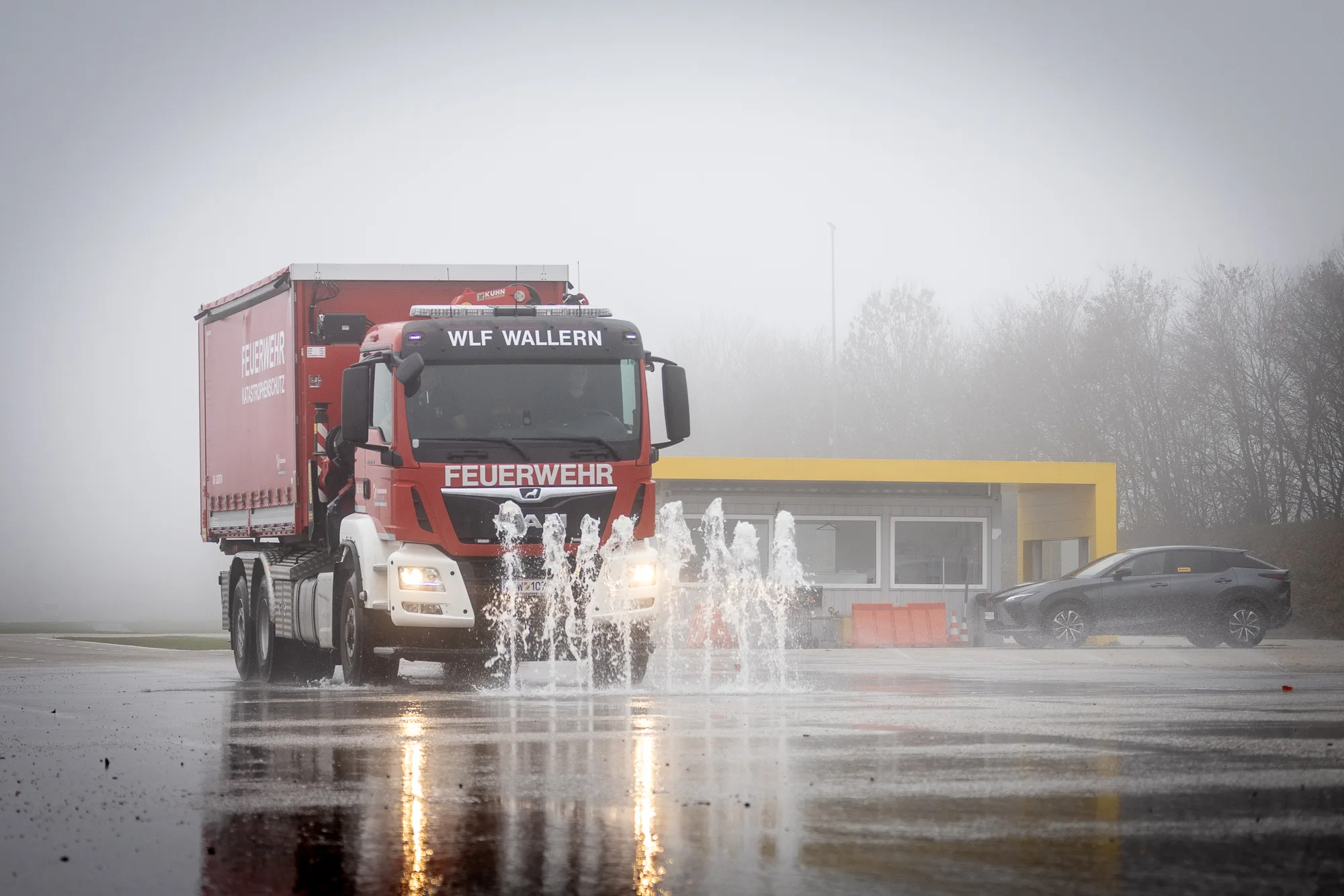 Unter kontrollierten Bedingungen konnten verschiedene Fahrmanöver geübt werden. Besonders eindrucksvoll war die Erkenntnis, wie stark sich bereits wenige km/h Unterschied auf den Bremsweg und die Fahrzeugkontrolle auswirken. Ein lehrreicher Tag, der die Sicherheit im Einsatz weiter erhöht!