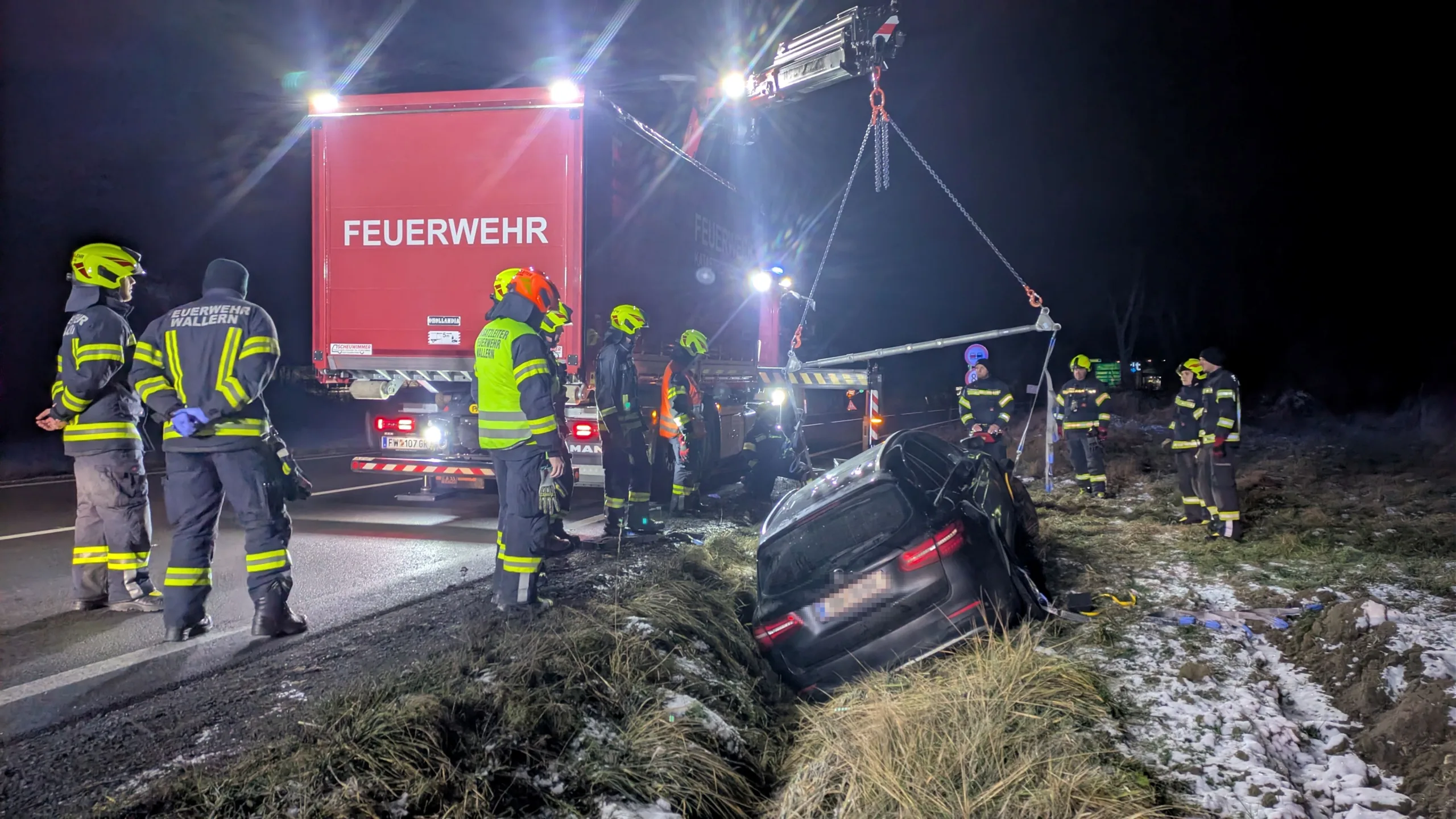 Am 30. Dezember 2025 um 22:13 Uhr wurde die Feuerwehr Wallern mit dem Stichwort „Verkehrsunfall Aufräumarbeiten“ auf der B137 alarmiert.
